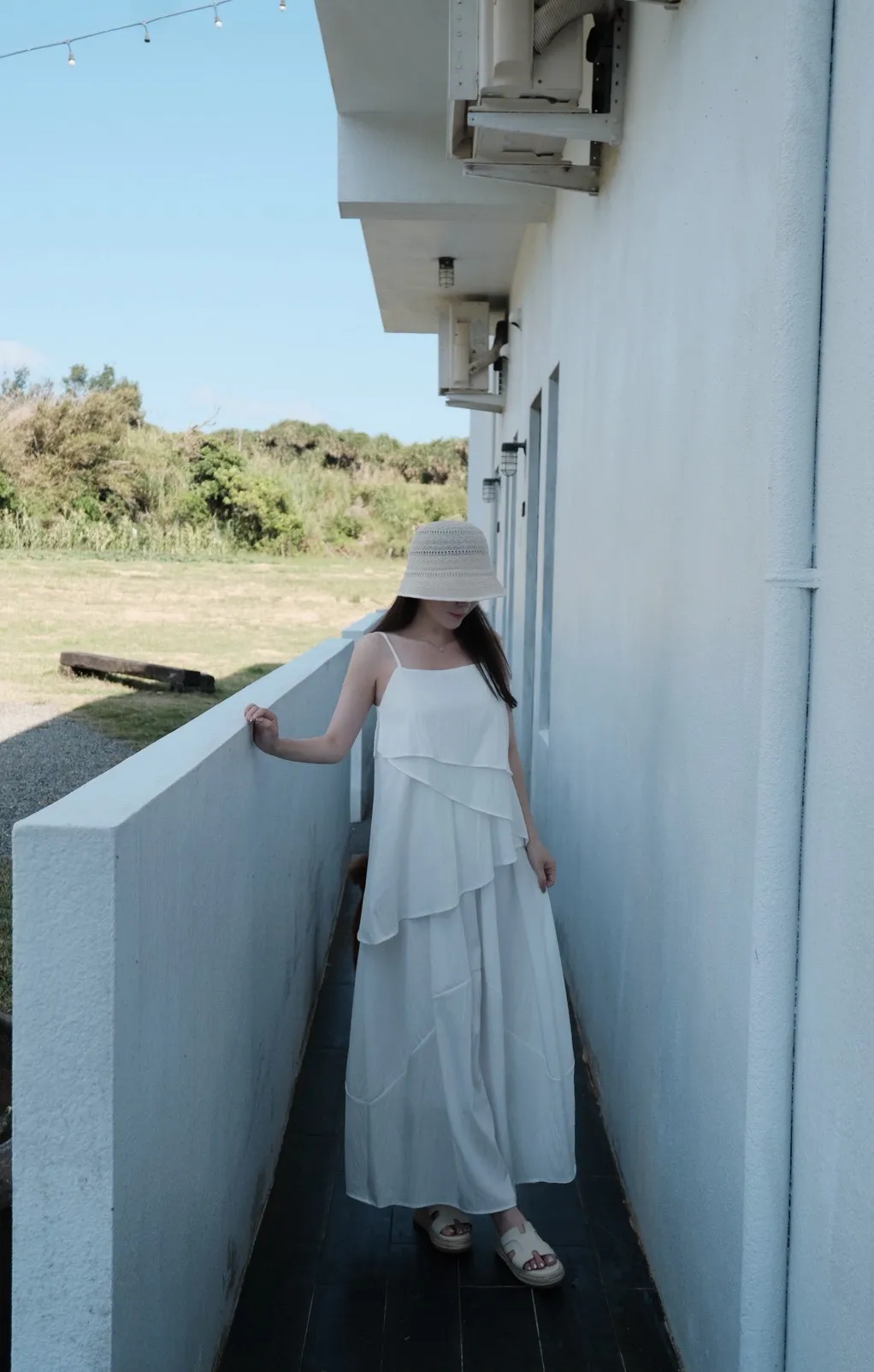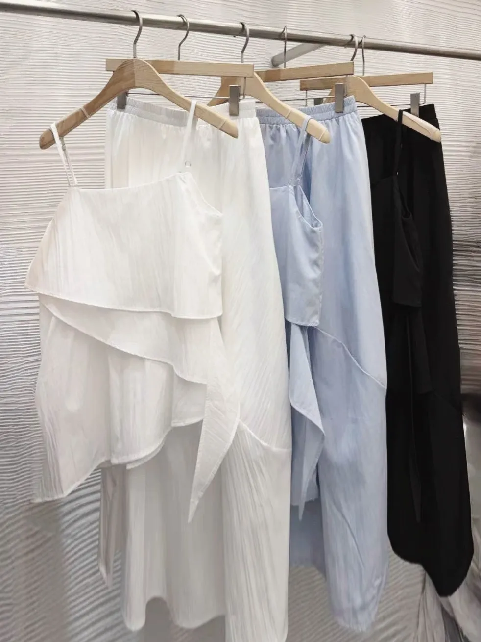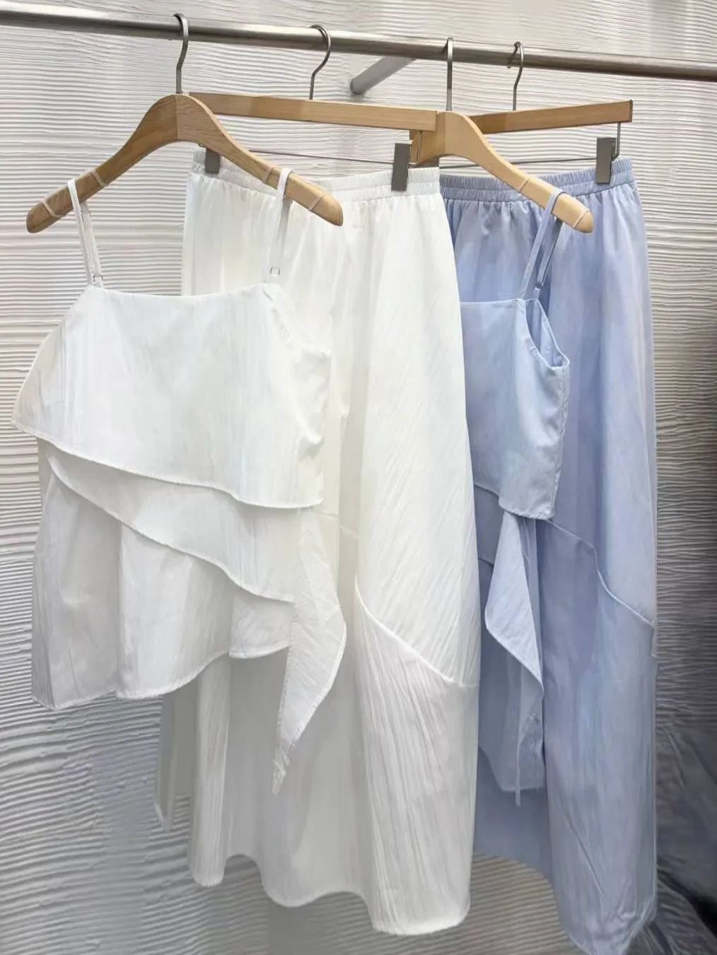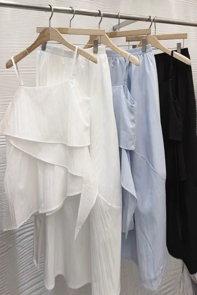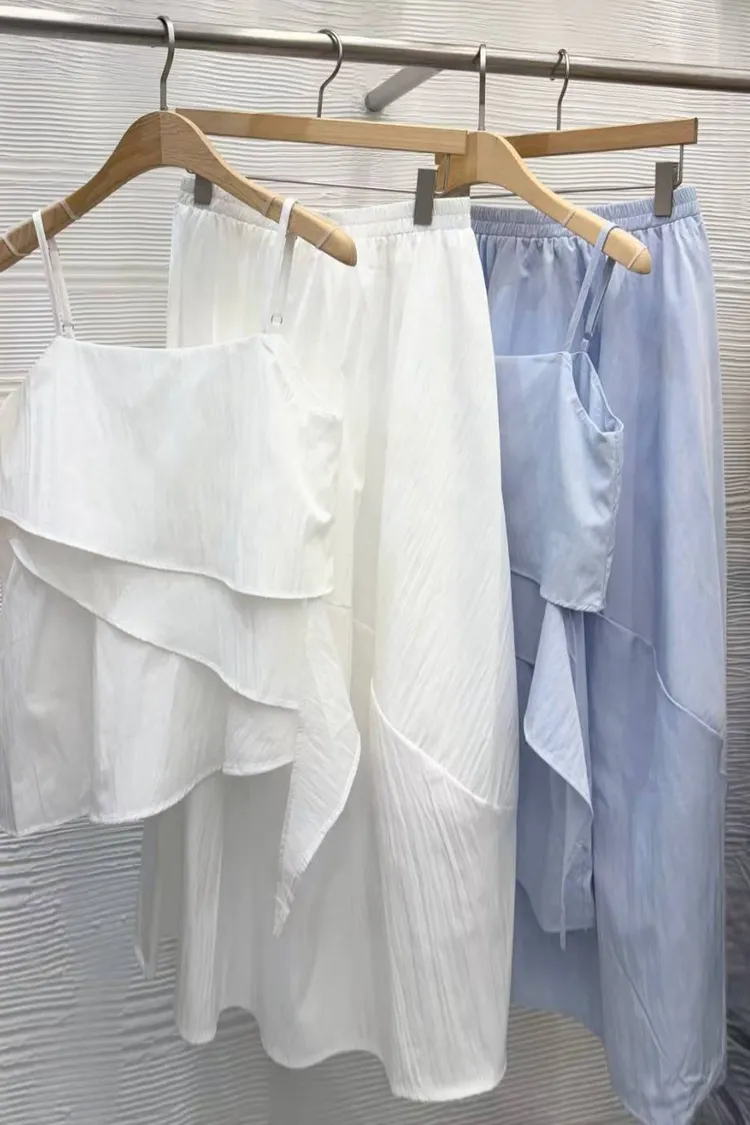 雪紡度假系列不規則+半身裙套裝(肩帶可調)