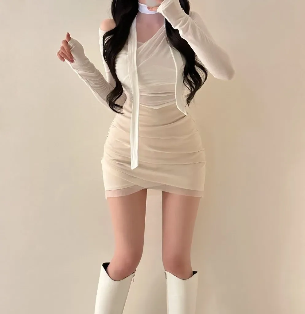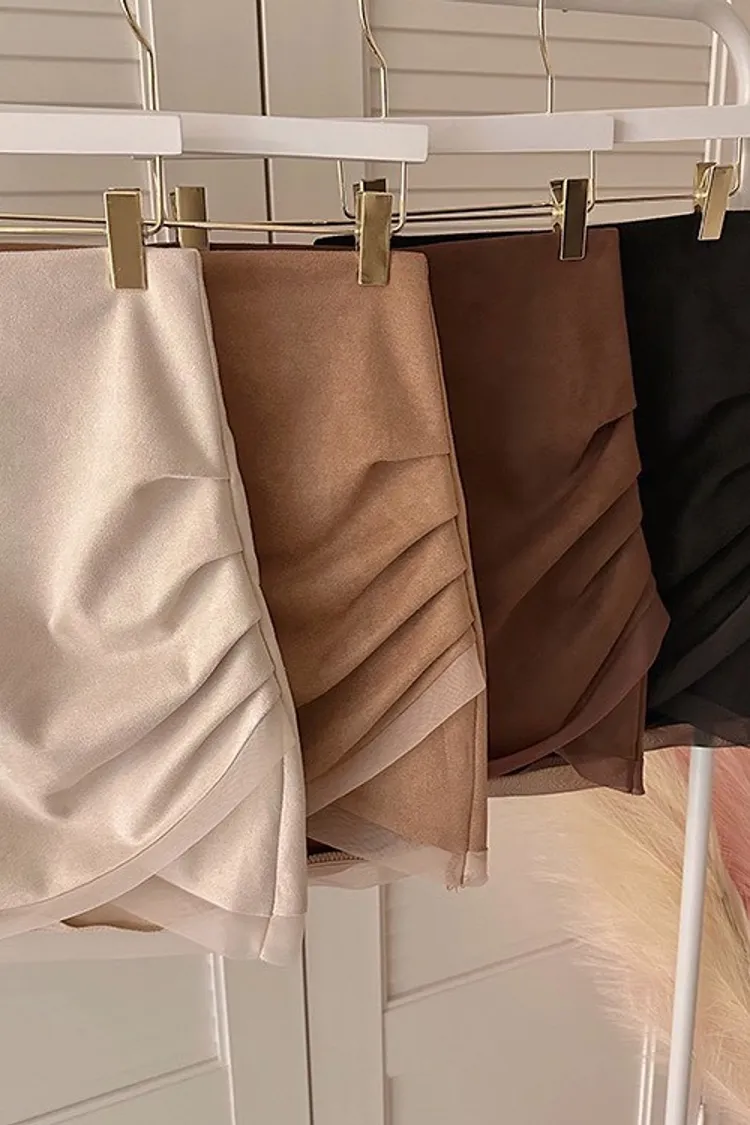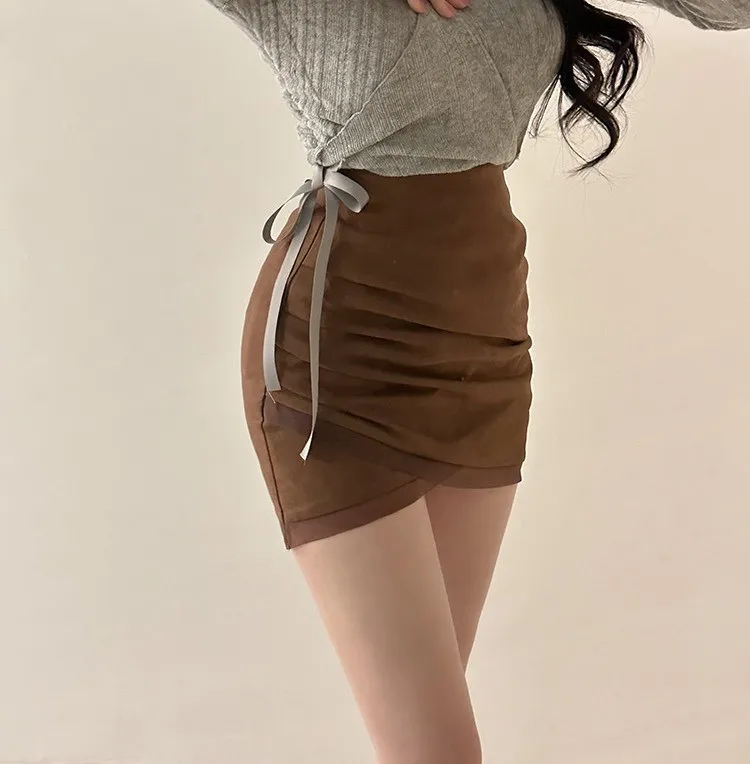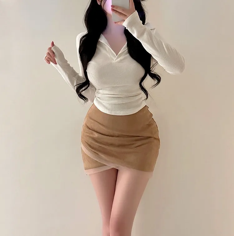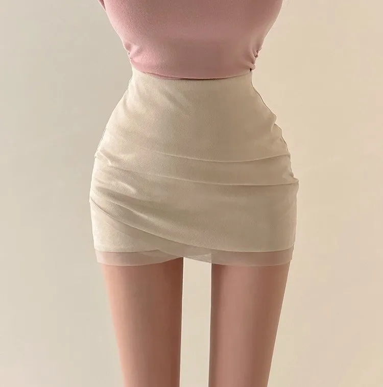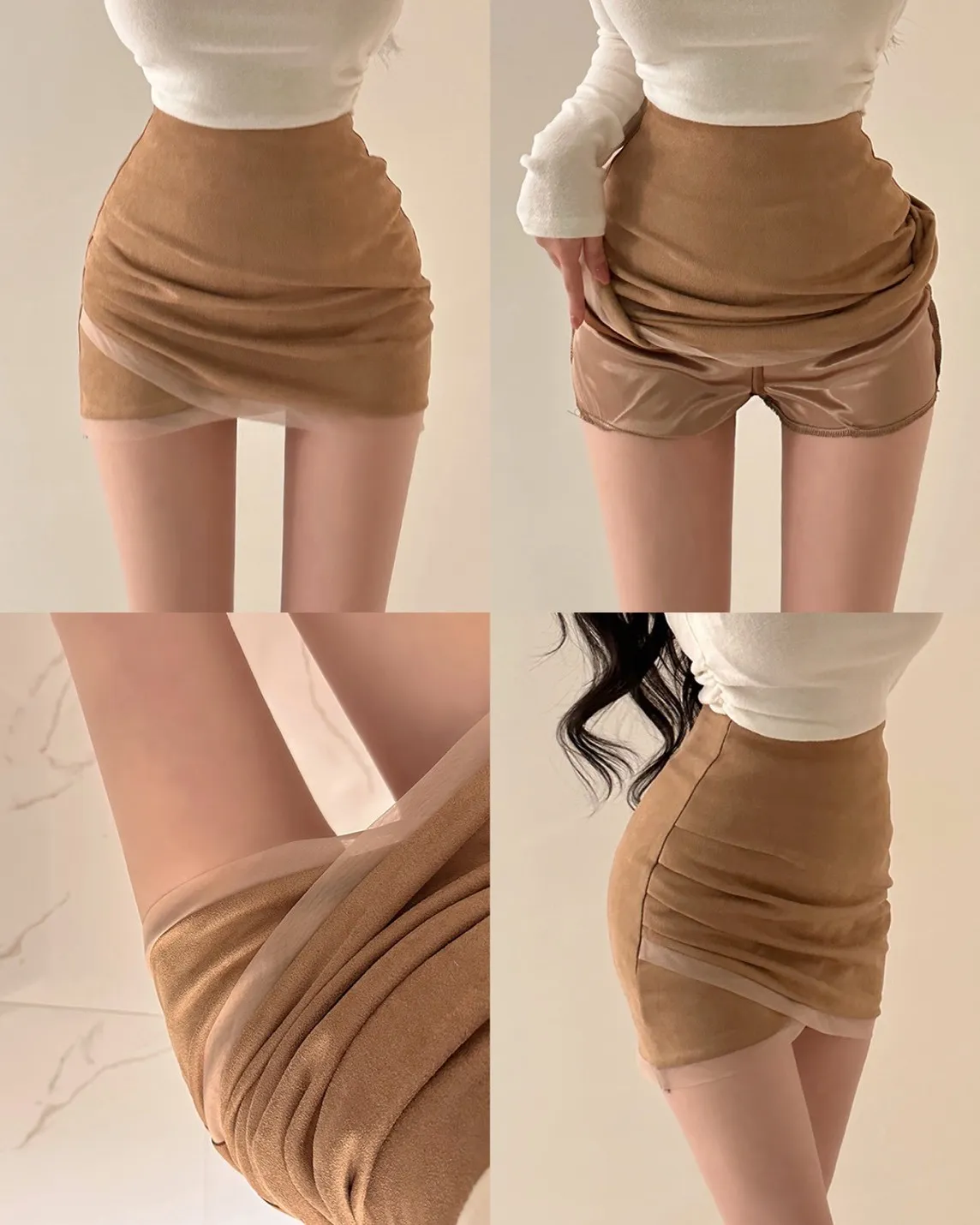 私藏秋冬訂製麂皮拼接網紗包臀裙