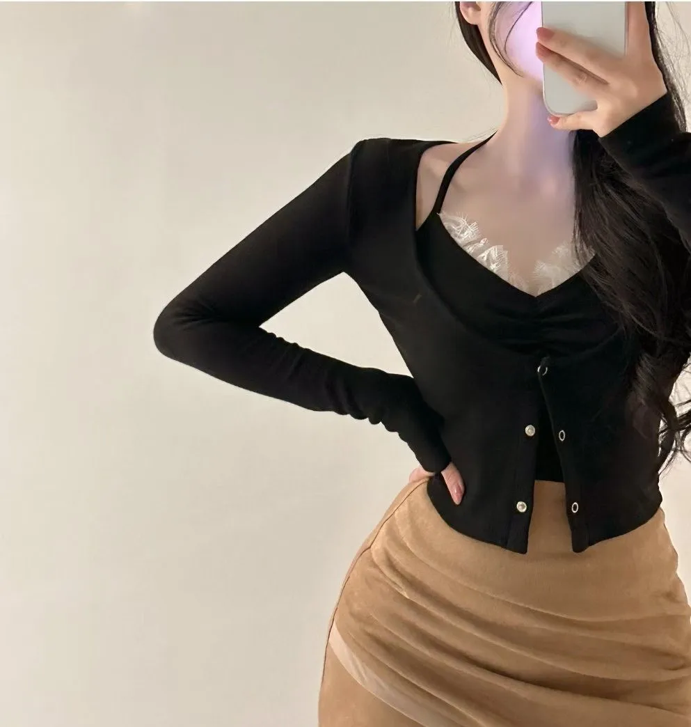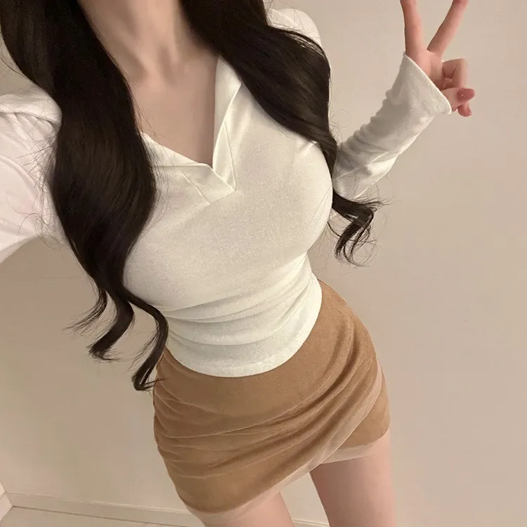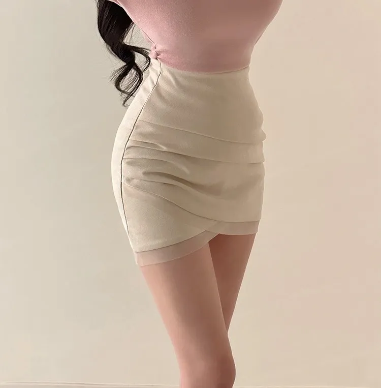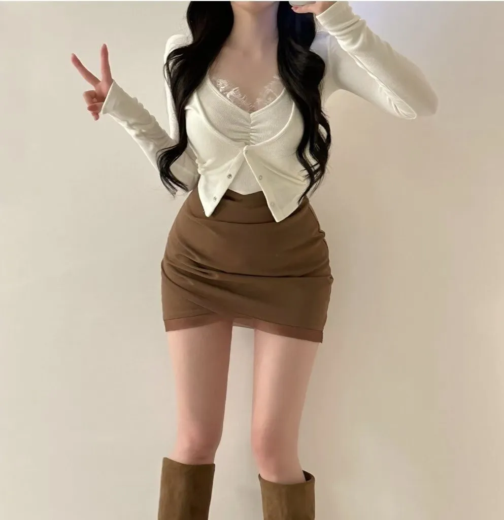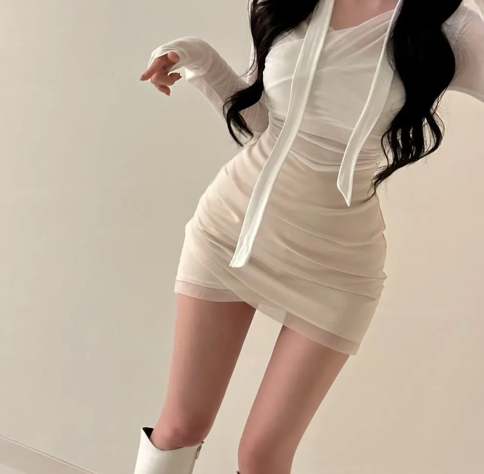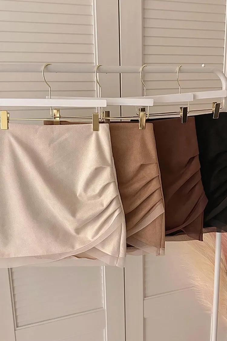 私藏秋冬訂製麂皮拼接網紗包臀裙