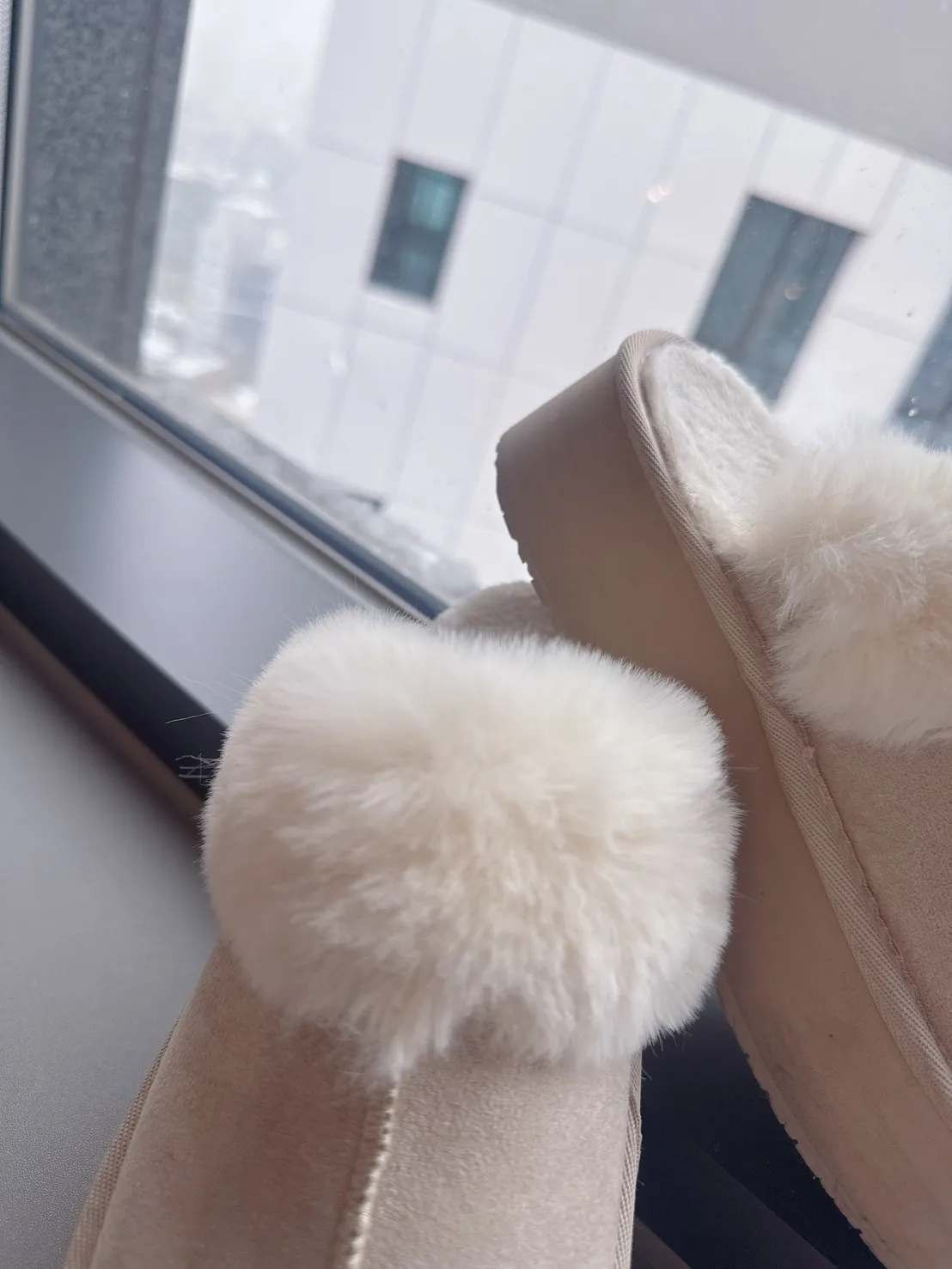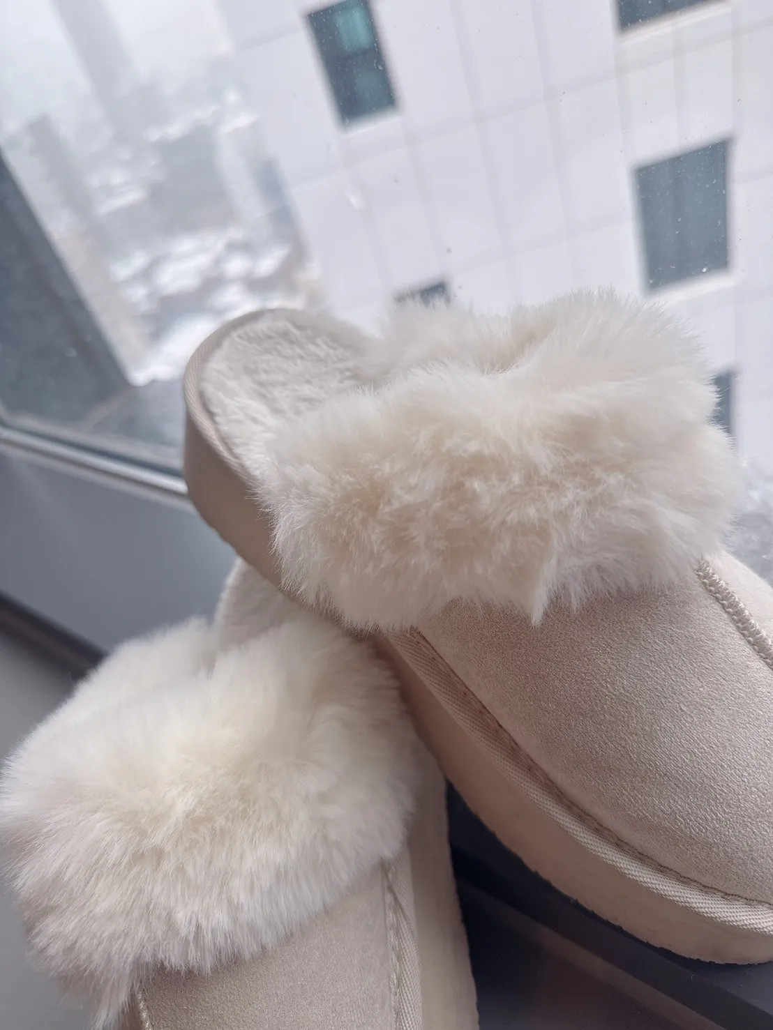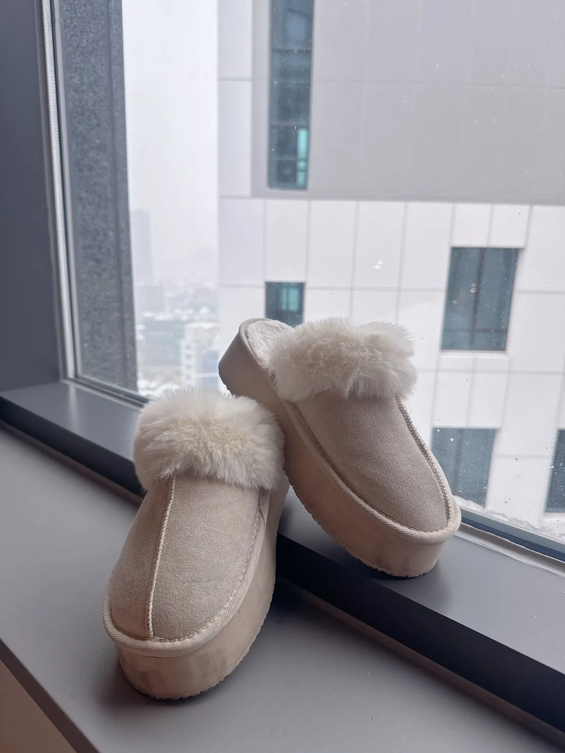 訂製私藏款溫柔淺奶杏毛毛厚底半脫鞋(腳板寬/會穿襪子/不喜歡穿太剛好以上建議大一碼)