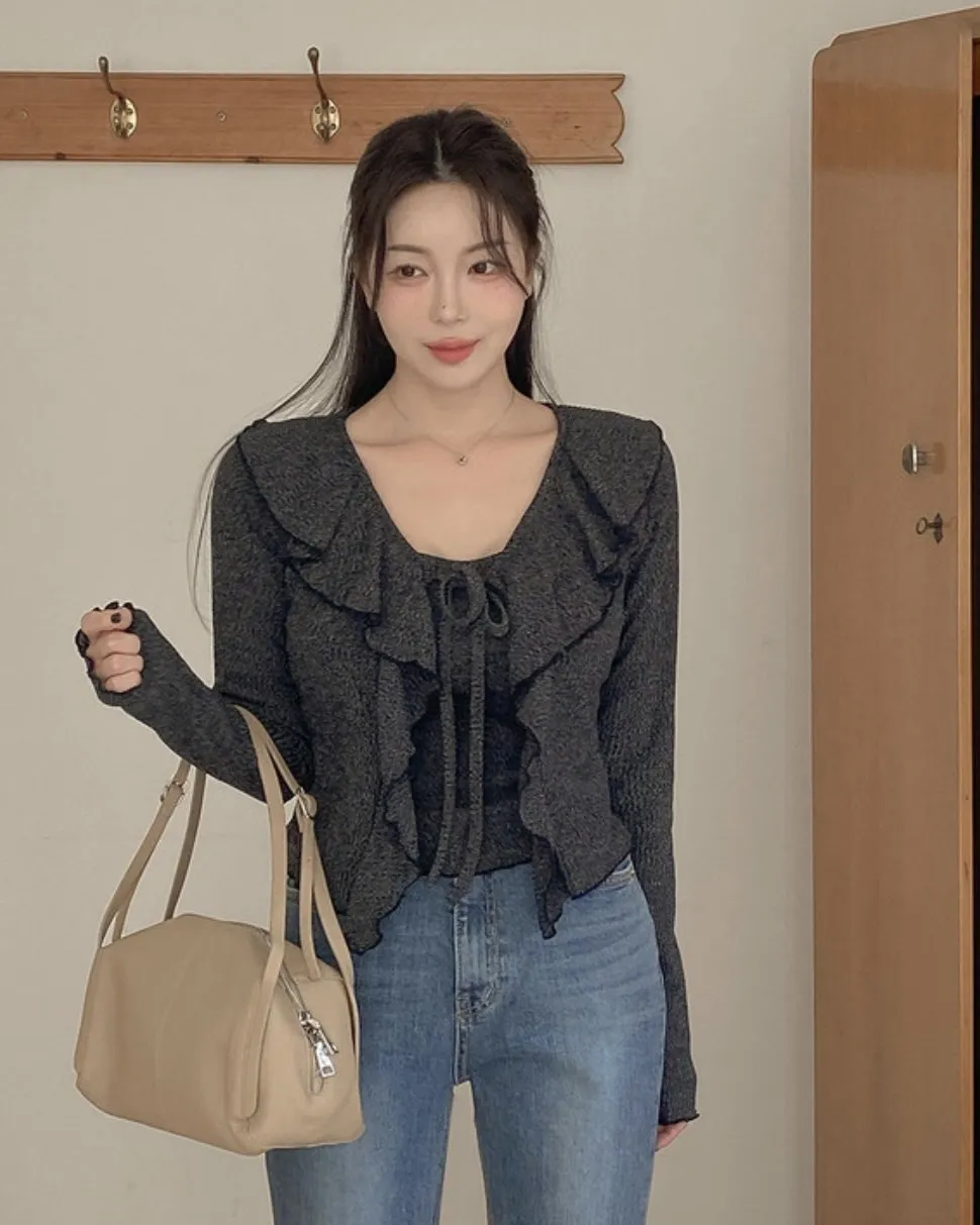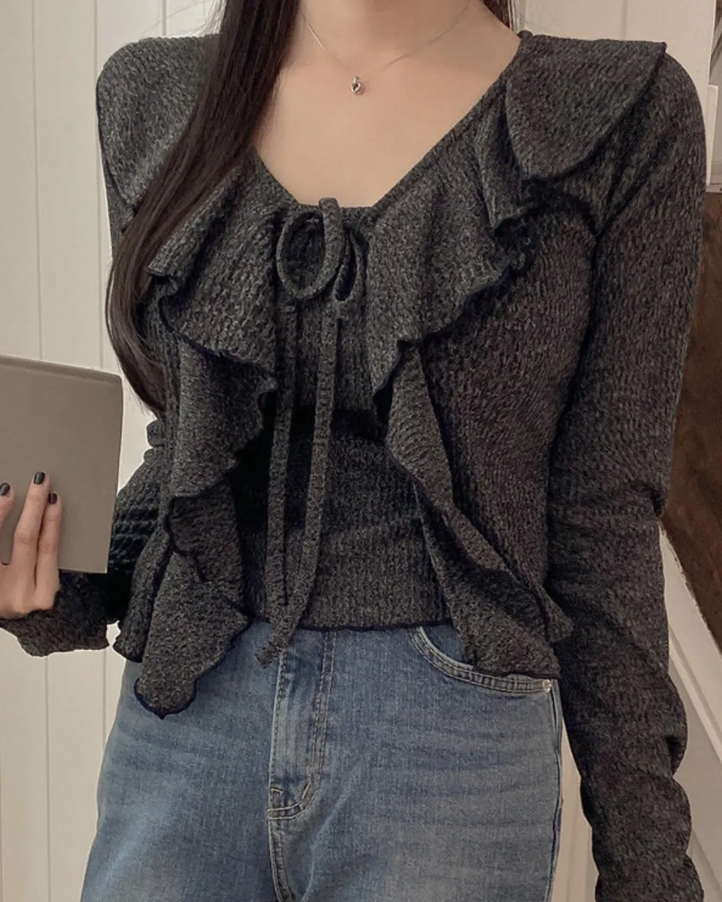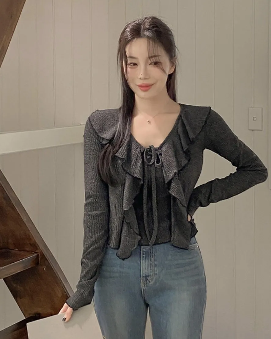 (私藏必買款)棉質背心+荷葉邊領綁帶罩衫兩件式上衣set
