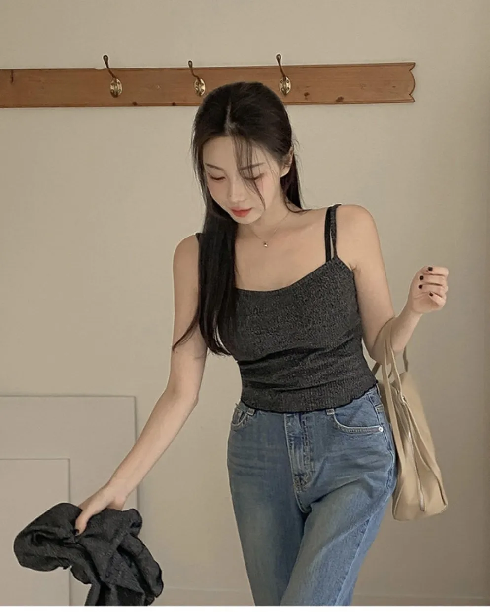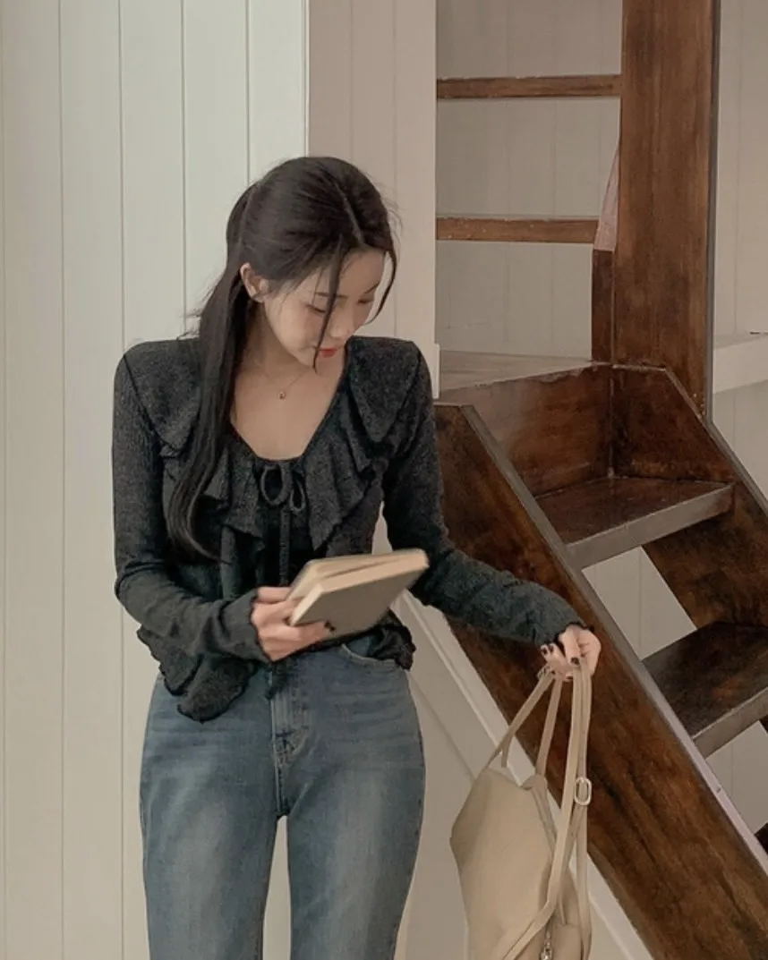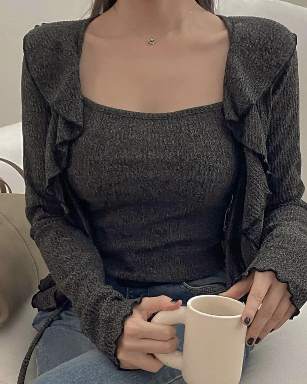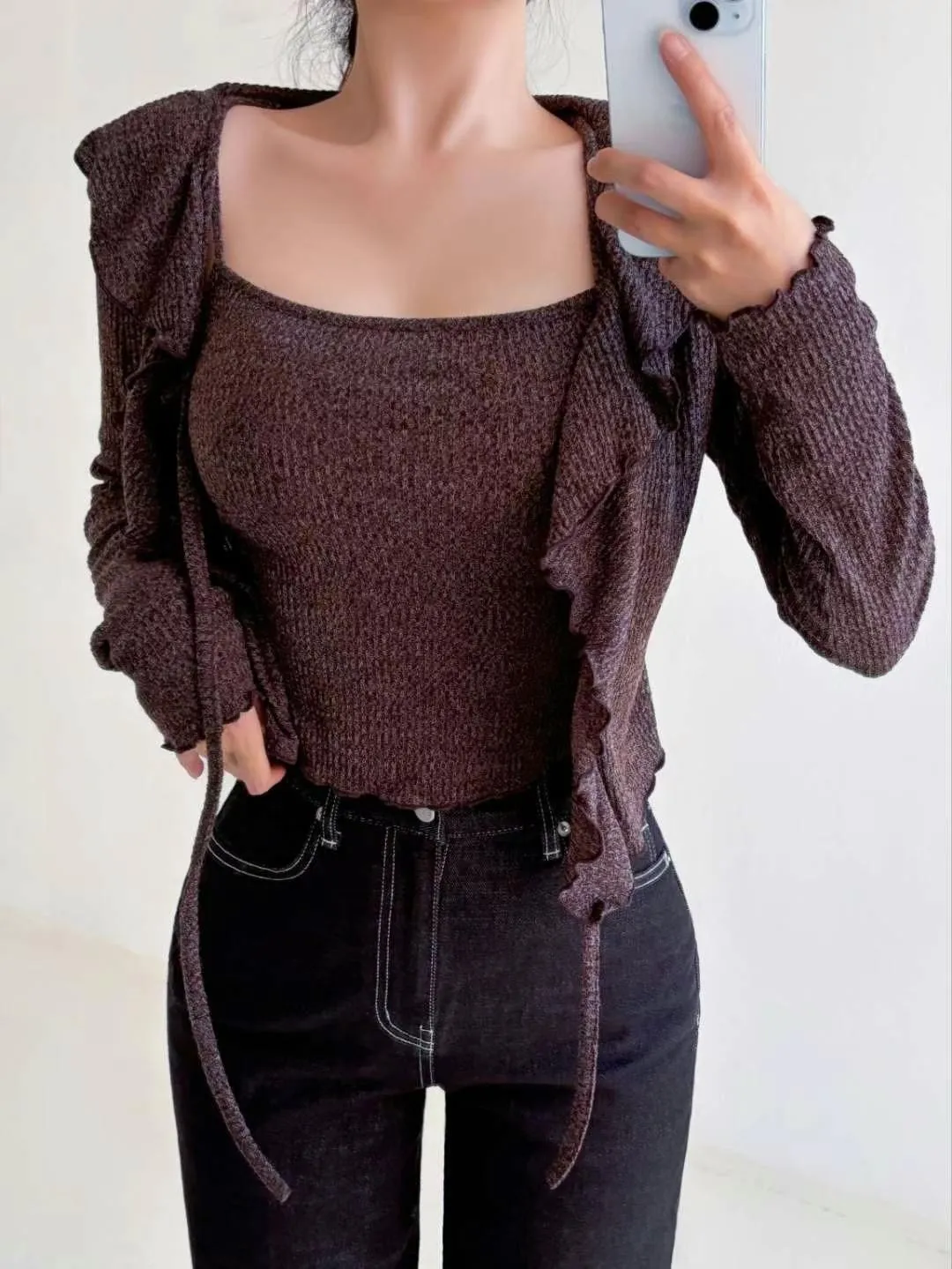 (私藏必買款)棉質背心+荷葉邊領綁帶罩衫兩件式上衣set