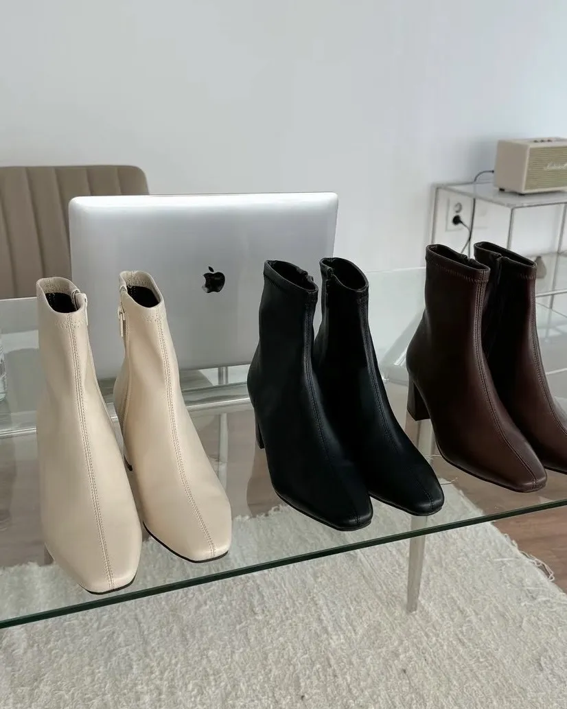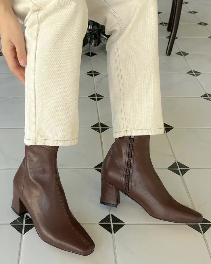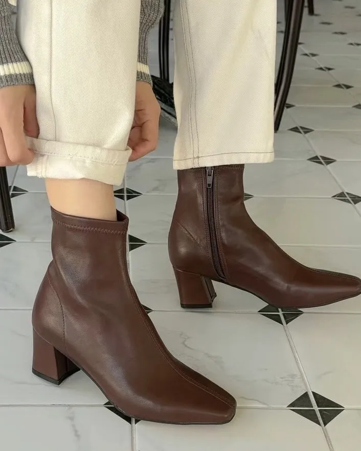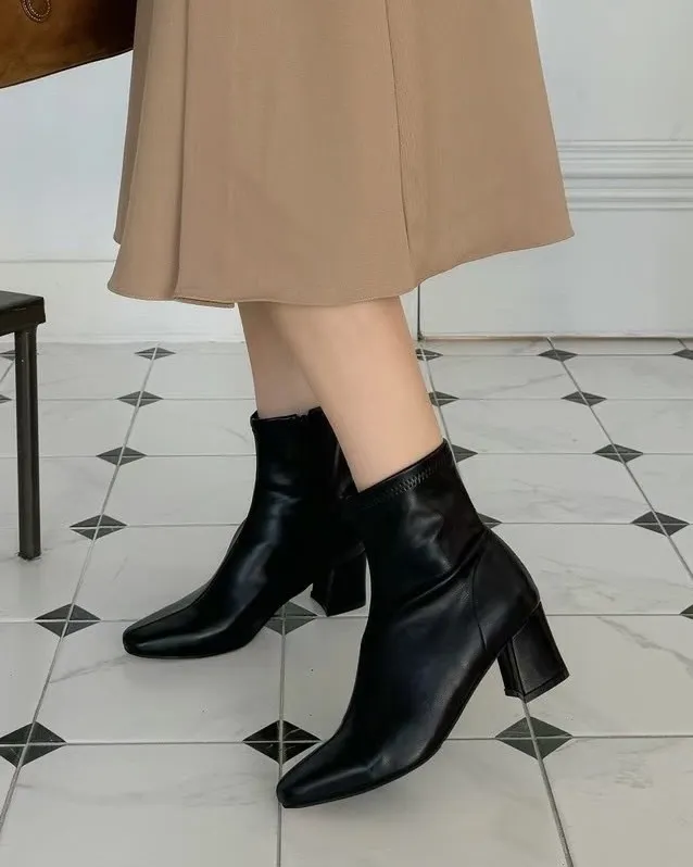 基本款短跟尖頭皮革短靴