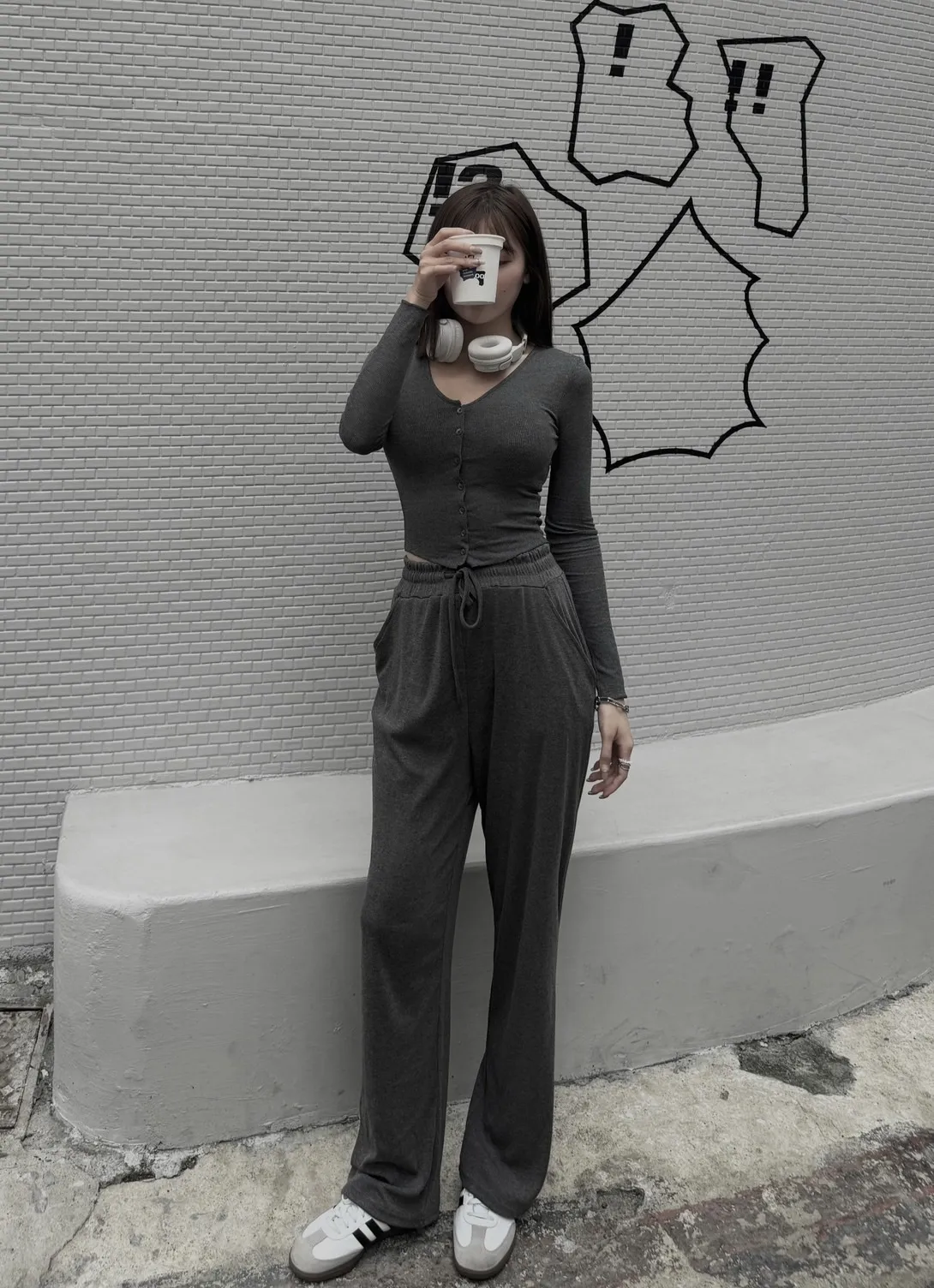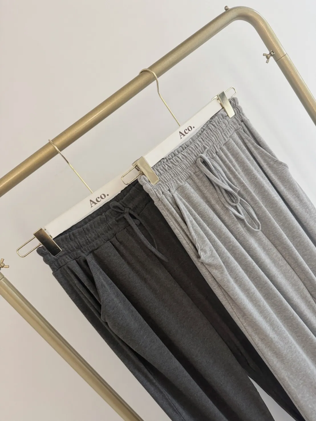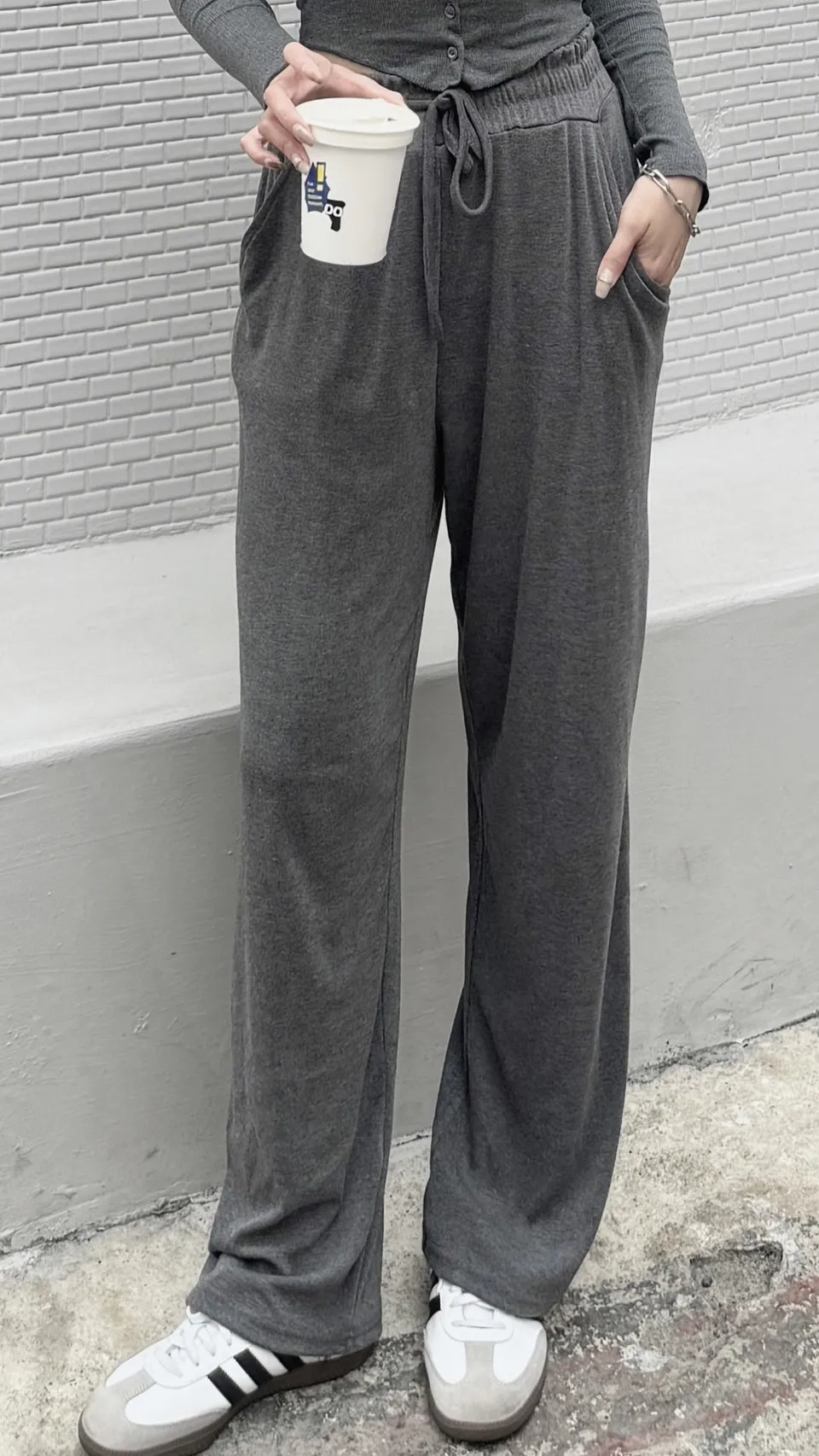 自訂款高腰彈力垂墜感直筒棉質抽繩寬褲