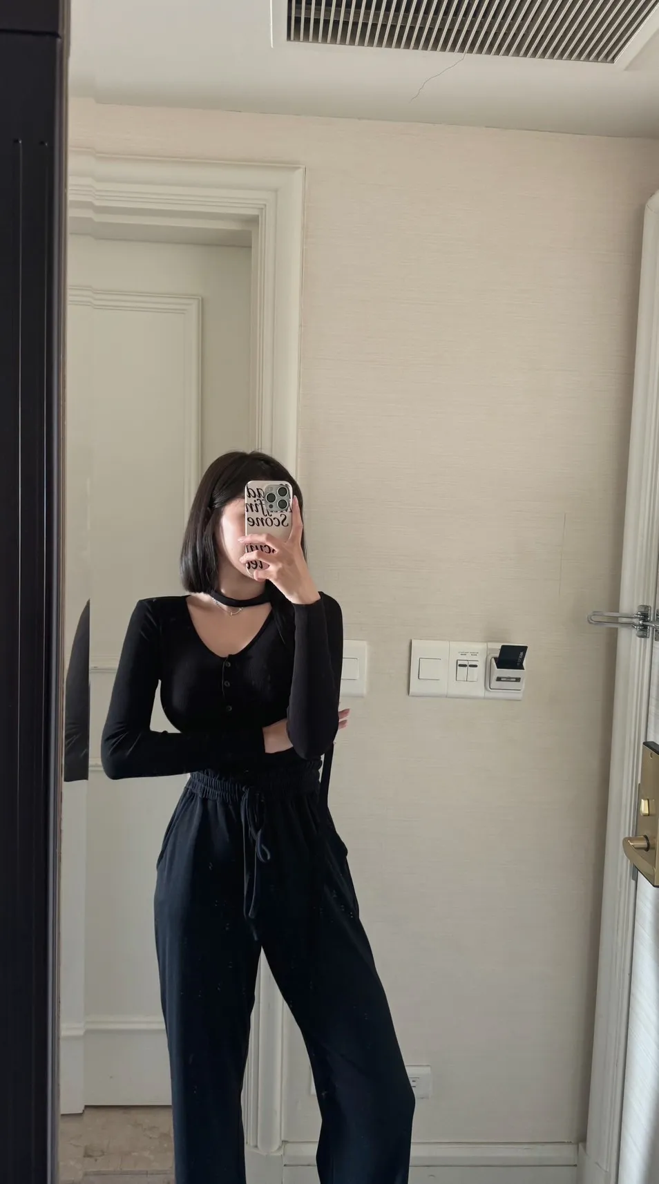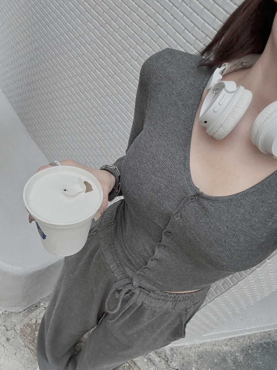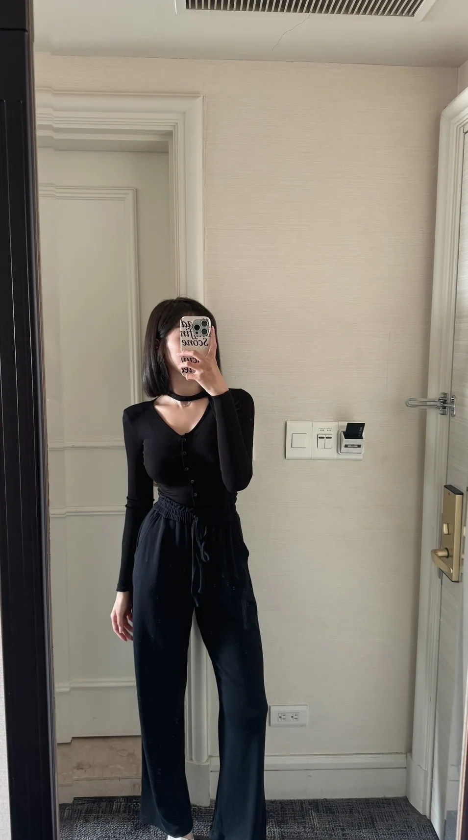 自訂款高腰彈力垂墜感直筒棉質抽繩寬褲