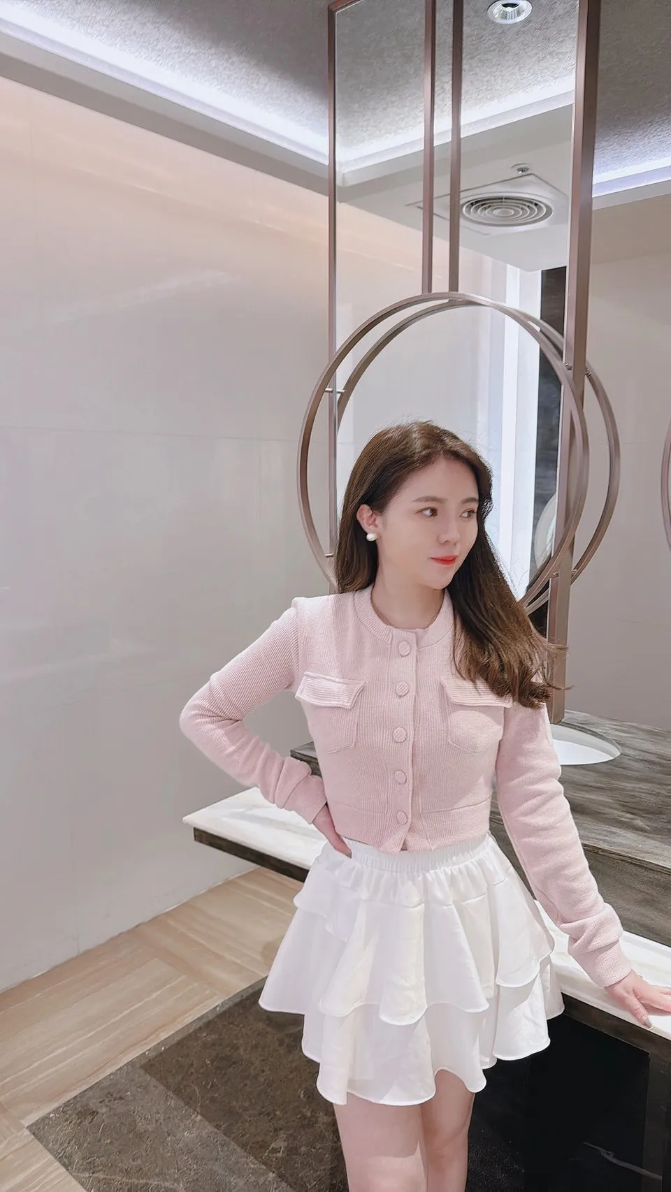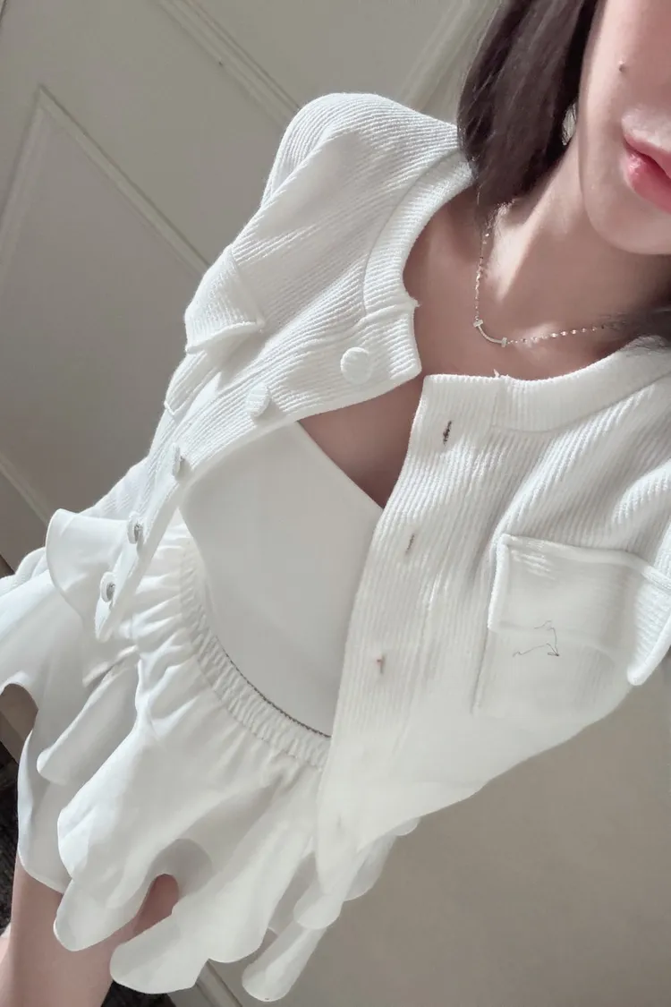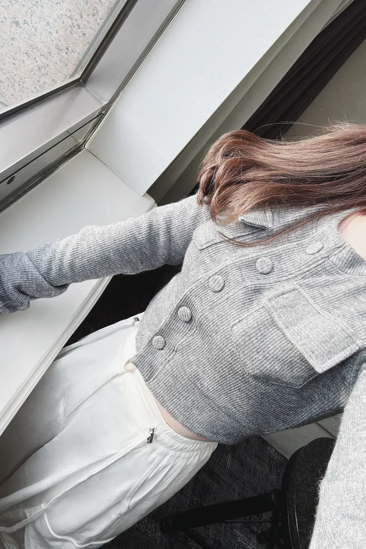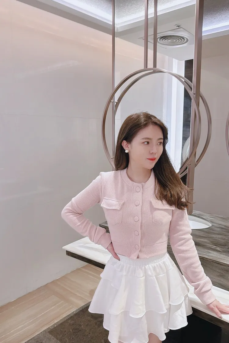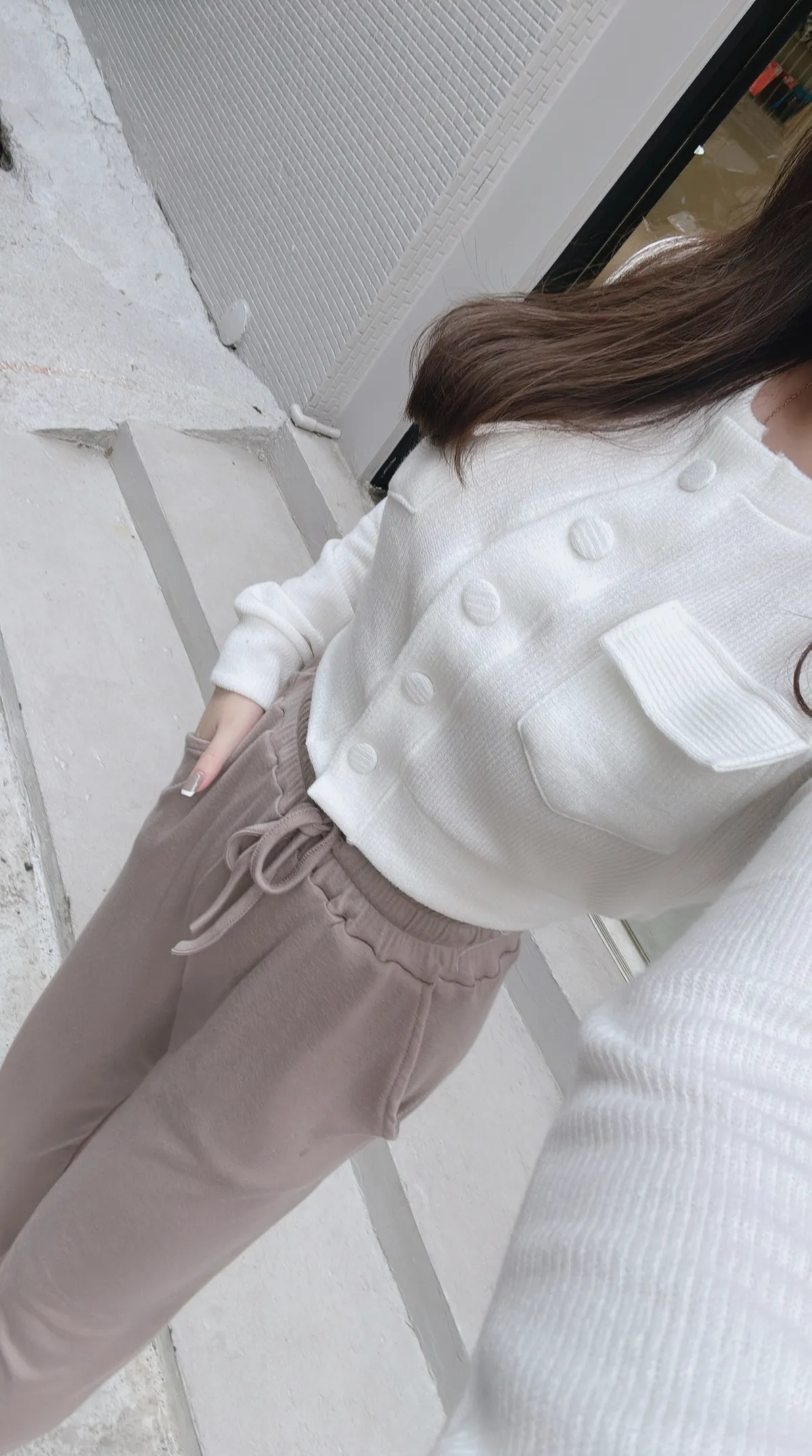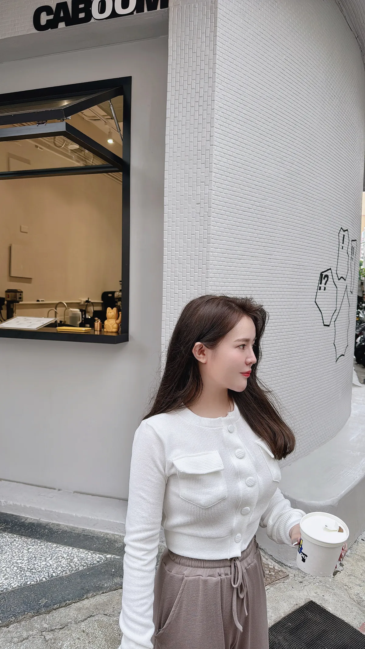 基本款彈力坑條羅紋圓釦短版外套(粉色/白色現貨)