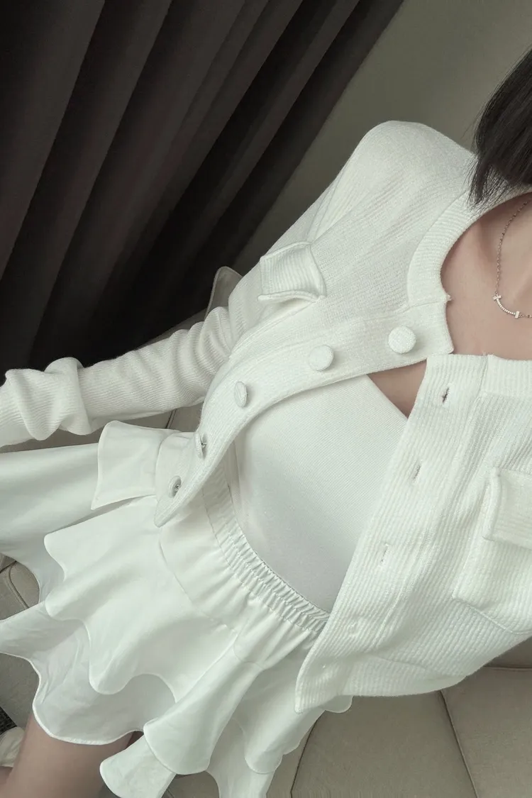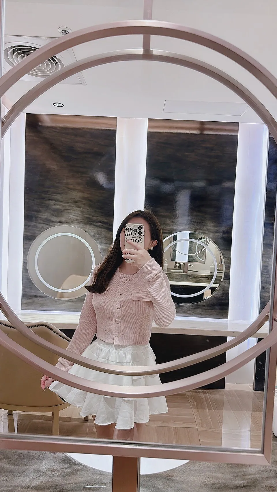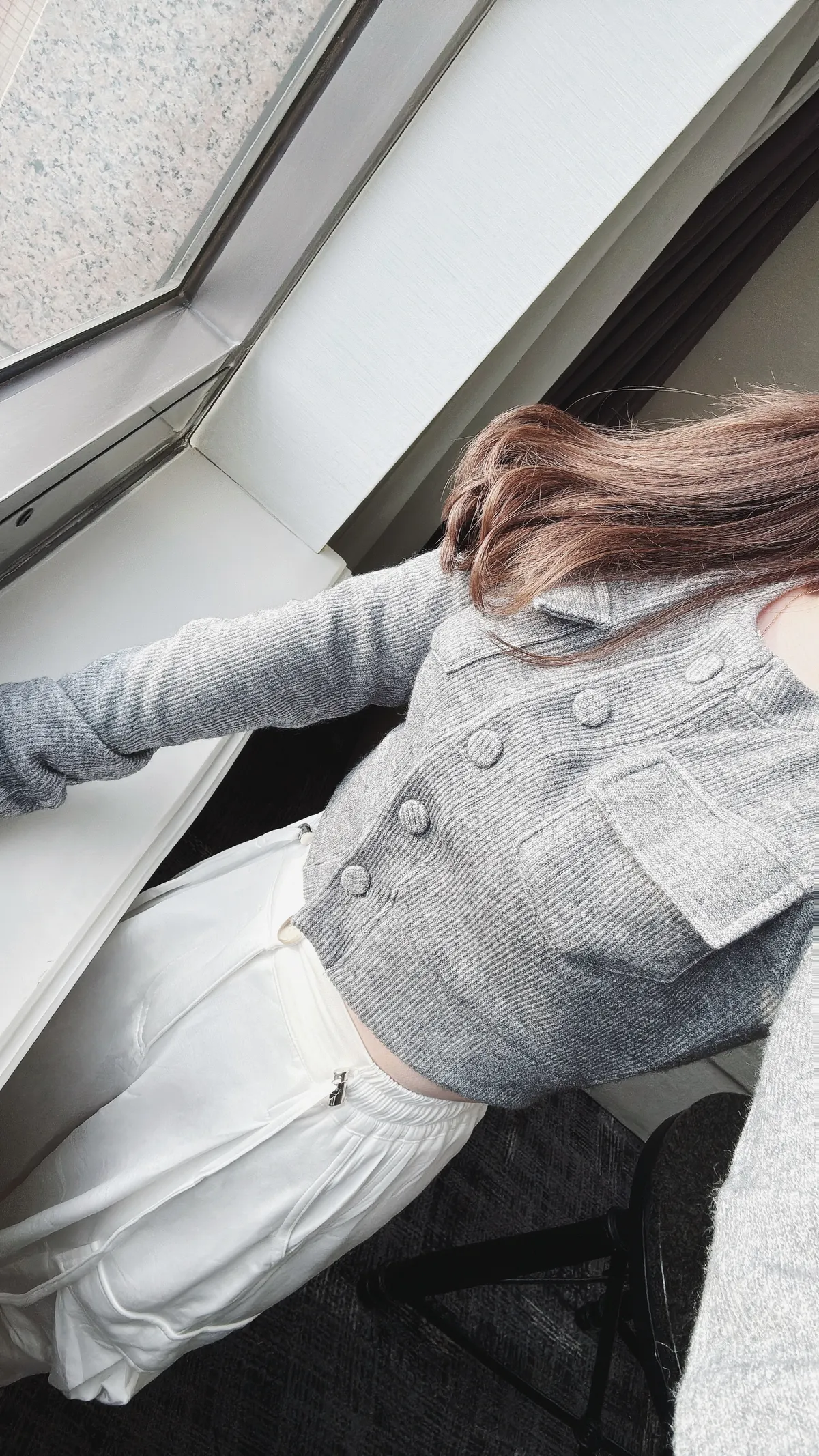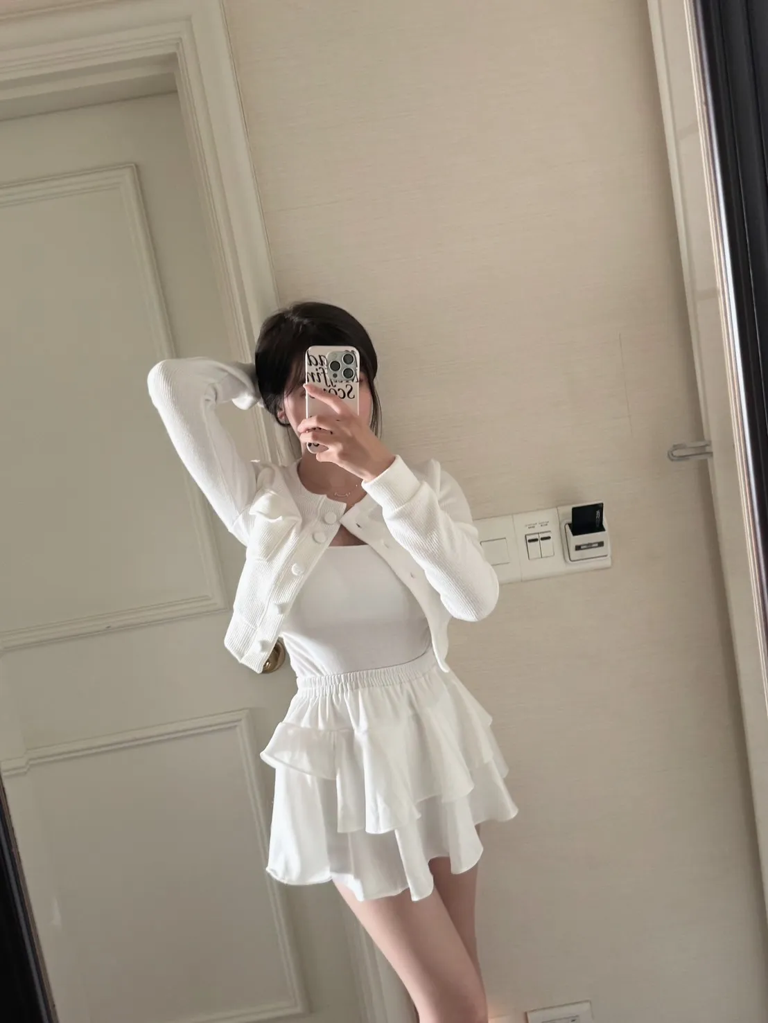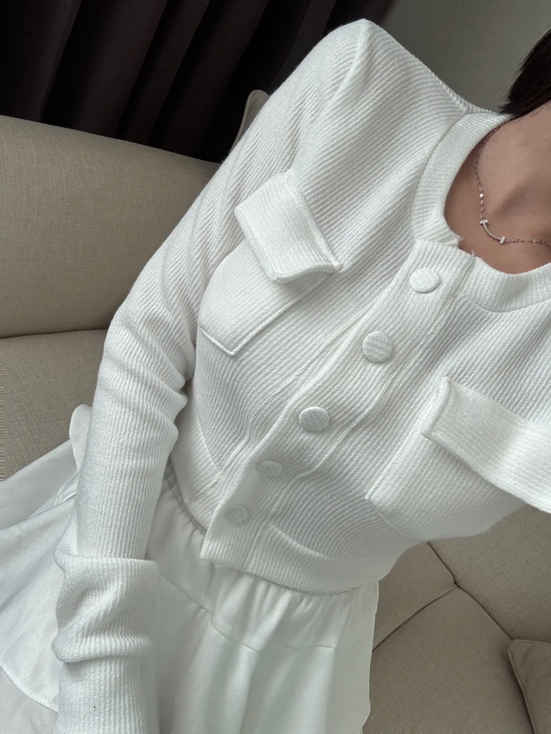 基本款彈力坑條羅紋圓釦短版外套(粉色/白色現貨)