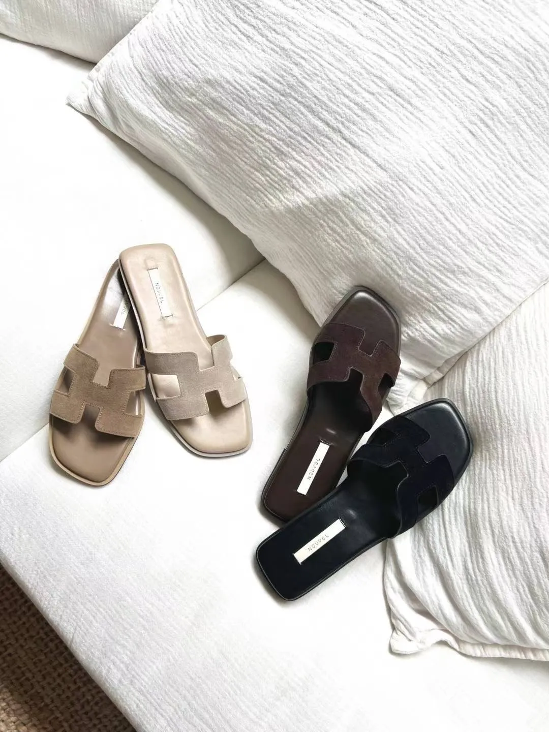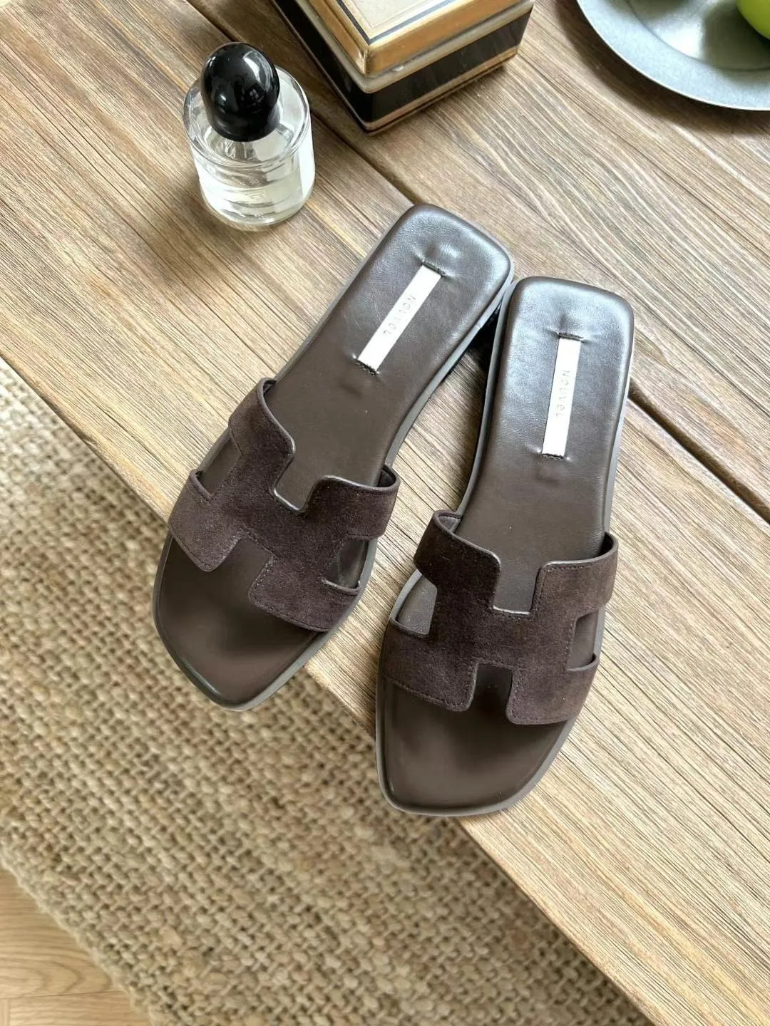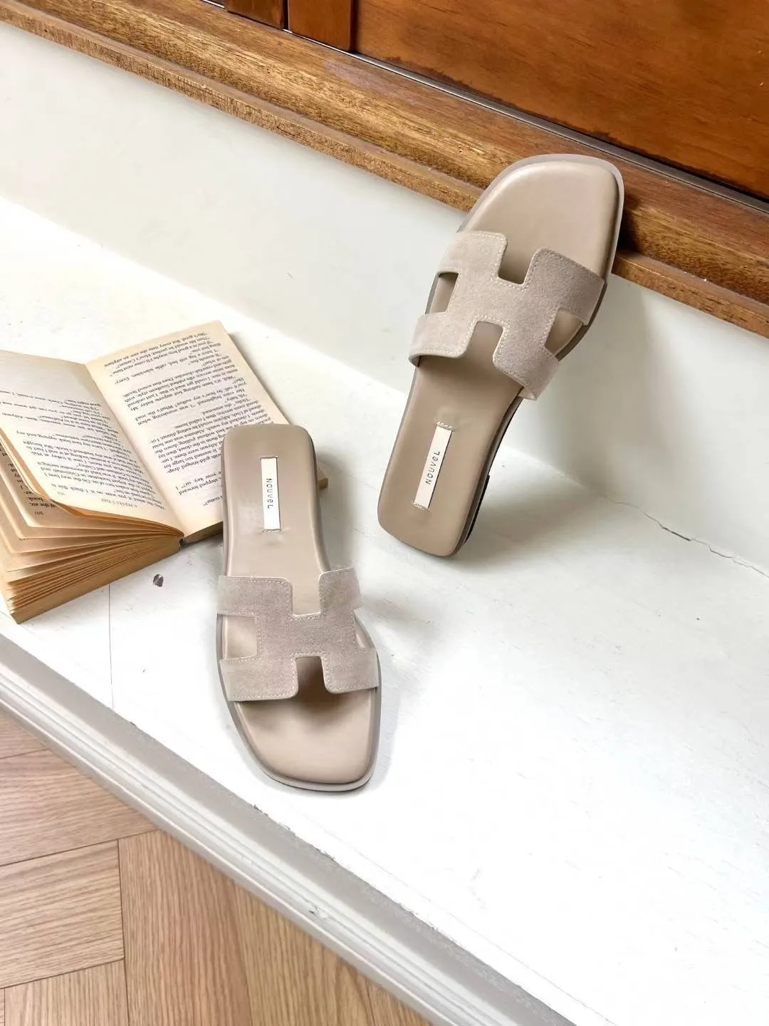 私藏秋冬主打款麂皮質感H字日常拖鞋