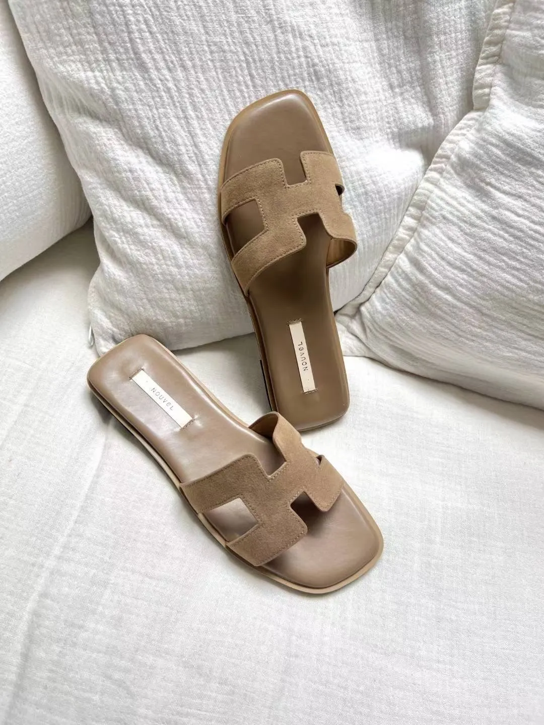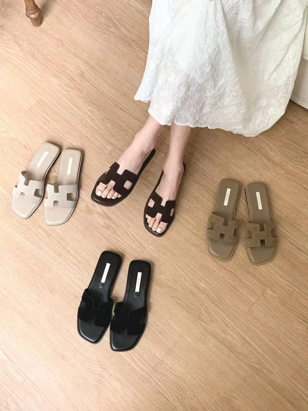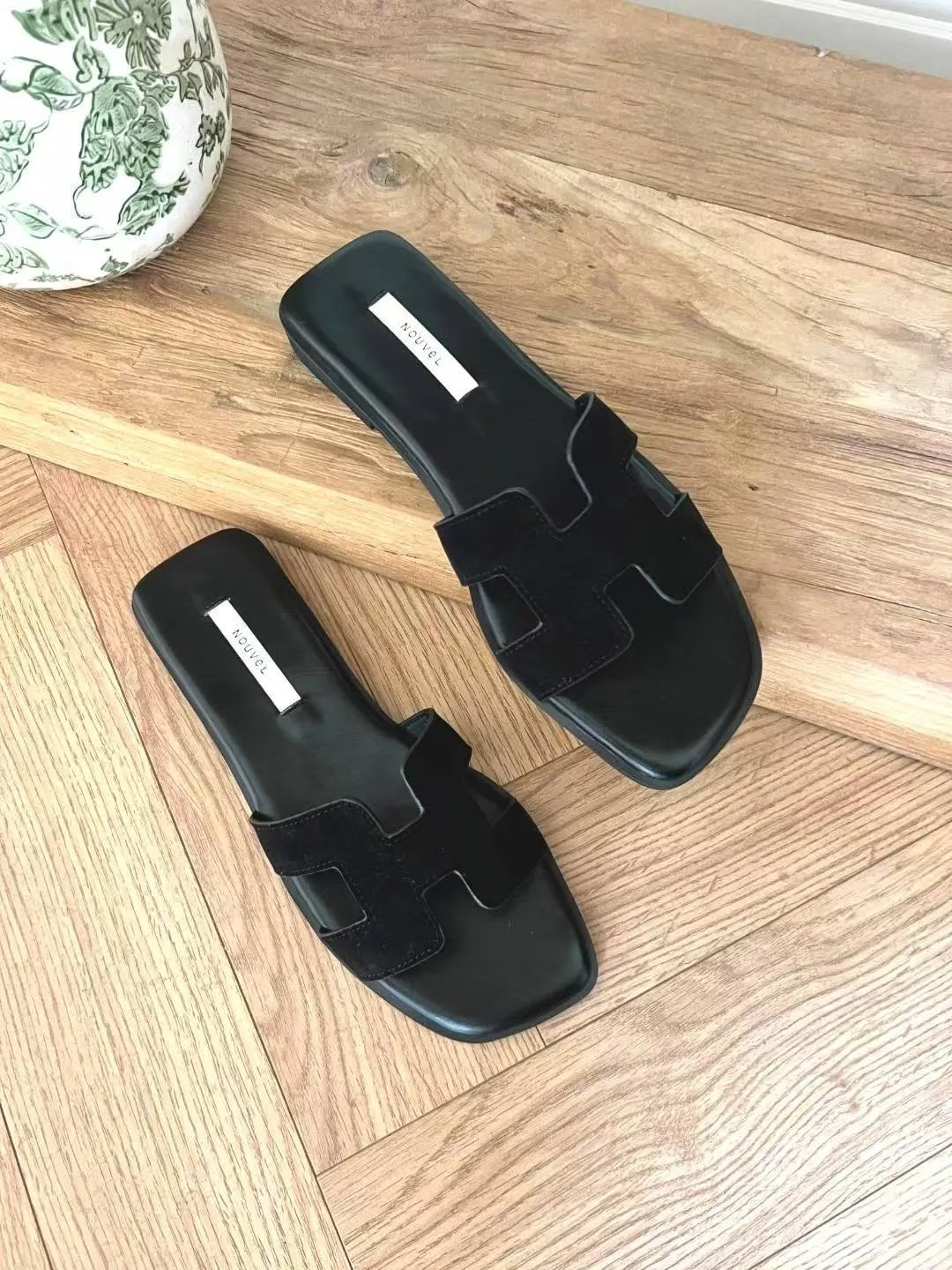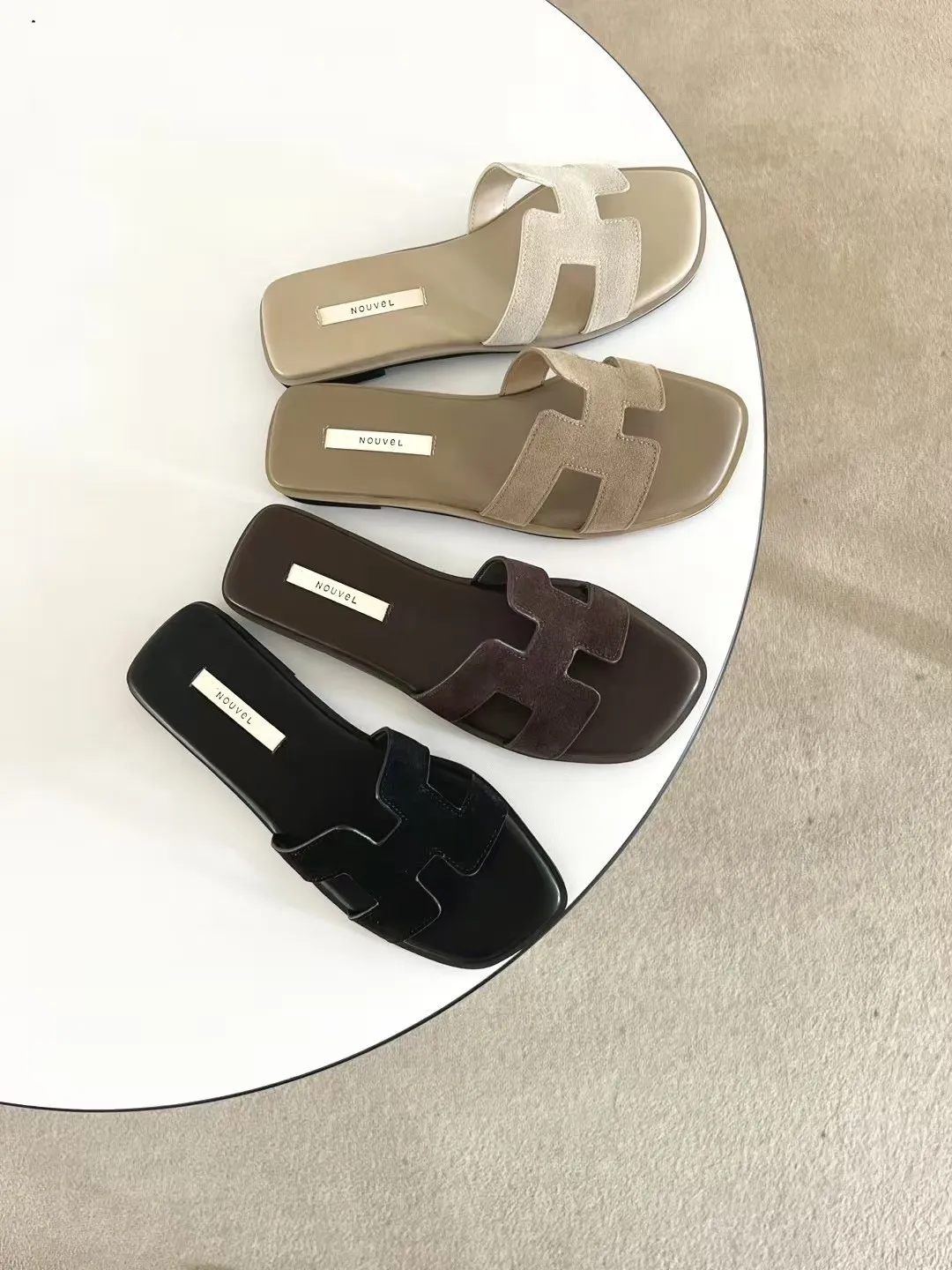 私藏秋冬主打款麂皮質感H字日常拖鞋