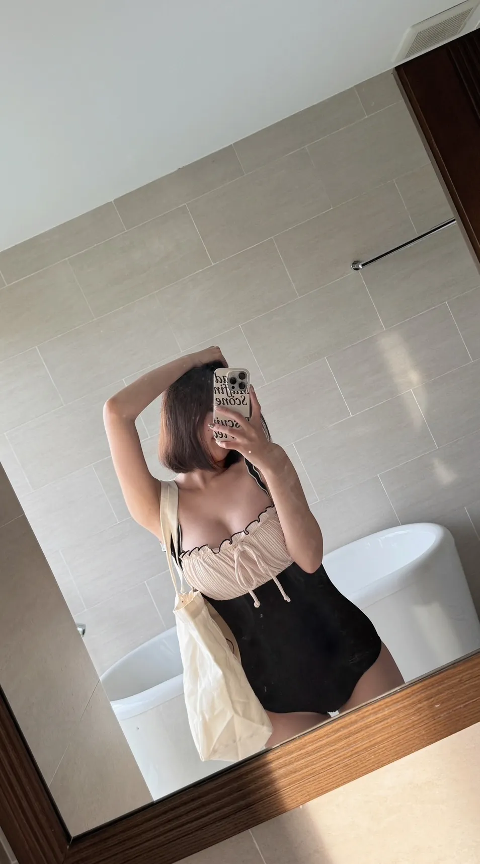 私藏高級感小香風方領顯瘦連身泳衣
